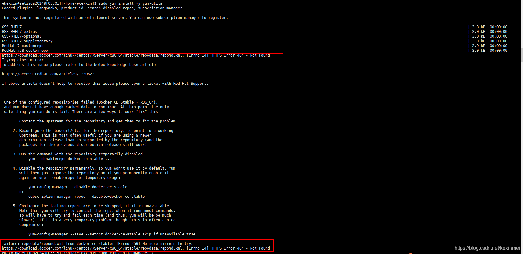 在Redhat7上安装docker的时候,按官方文档走遇到以下问题:
